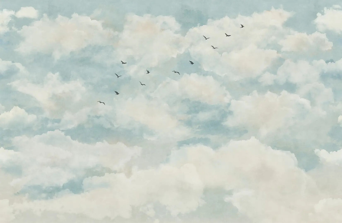 Watercolor Clouds and Birds