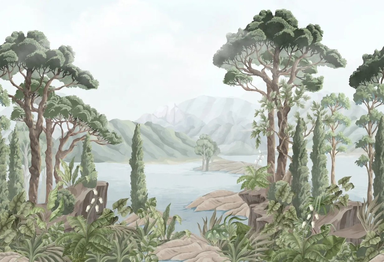 A wallpaper mural is a large printed image made to cover the whole wall. It is singularly decorative and imparts to a room a specific atmosphere of its own, details, and personality through artwork created for that given space.