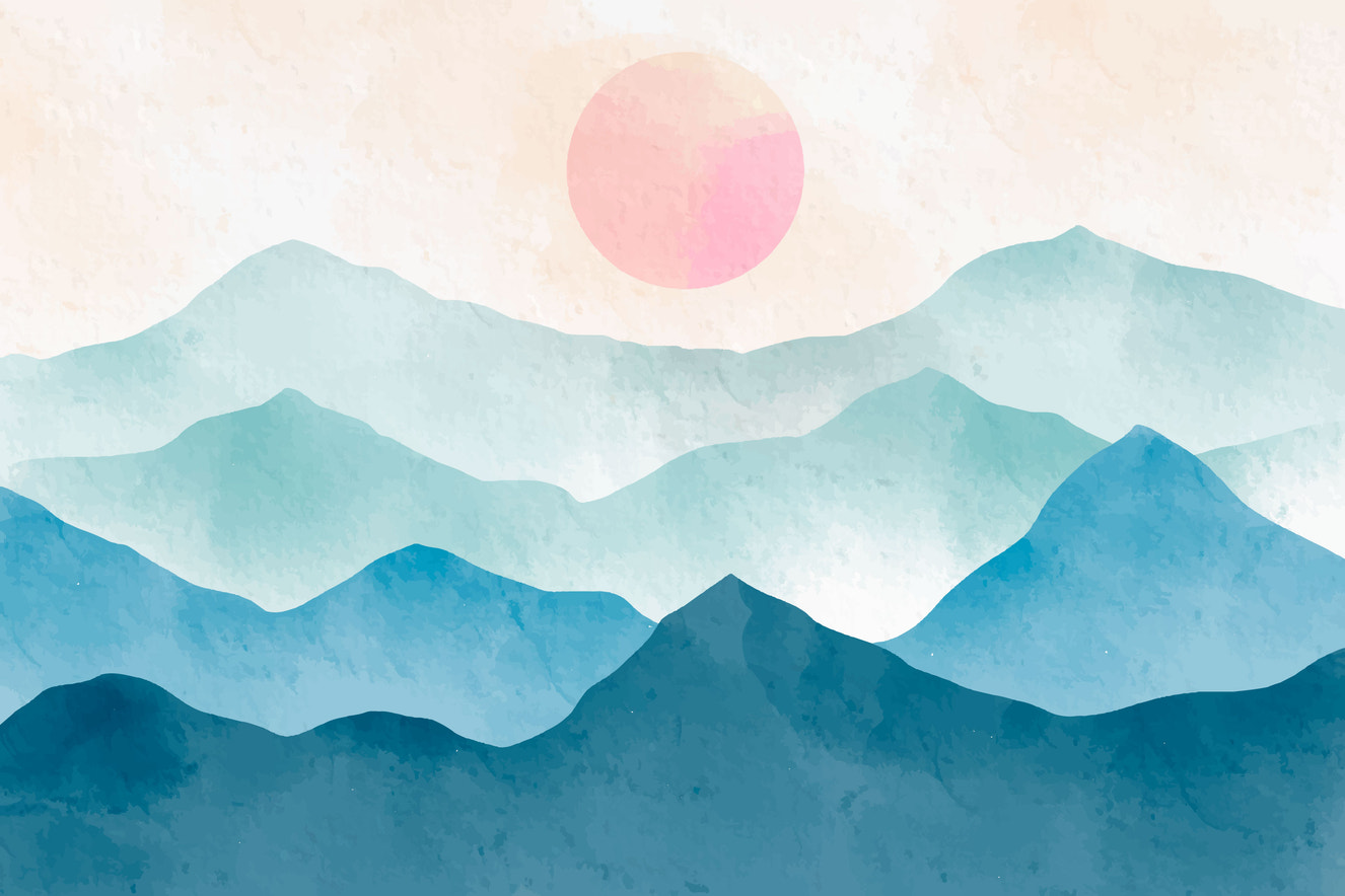 Watercolor Mountain Sunrise