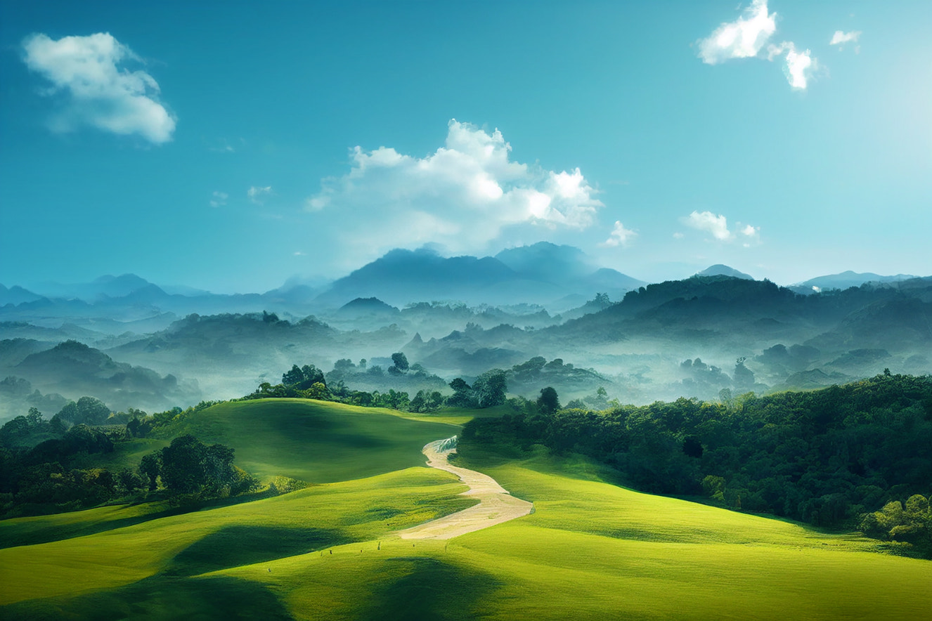 Misty Green Hills Landscape