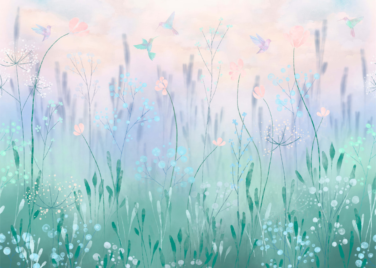 Pastel Floral with Hummingbirds