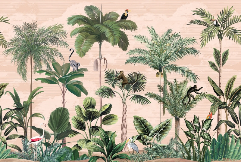 Tropical Themes: The tropical theme is the most popular in wallpaper decoration. From large banana leaf prints to playful animals and exotic forest scenes, bring a whimsical vibe to the walls. Mostly known for the living room walls and hallway area, which captivate with striking visual and natural elements.