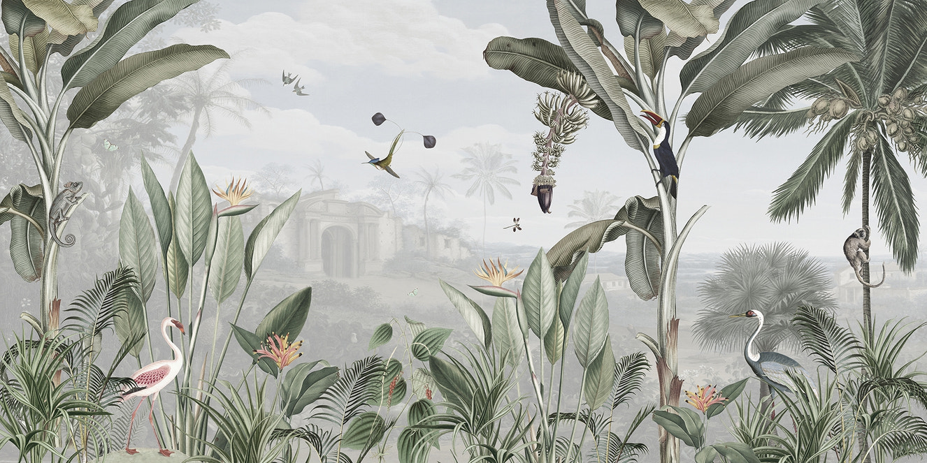 Tropical Themes: The tropical theme is the most popular in wallpaper decoration. From large banana leaf prints to playful animals and exotic forest scenes, bring a whimsical vibe to the walls. Mostly known for the living room walls and hallway area, which captivate with striking visual and natural elements.