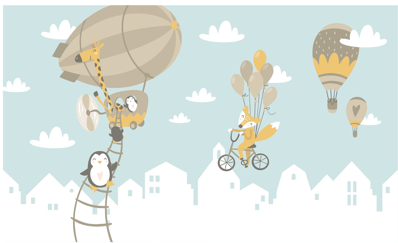 Fantasy Balloon Safari with Fox and Penguin Murals