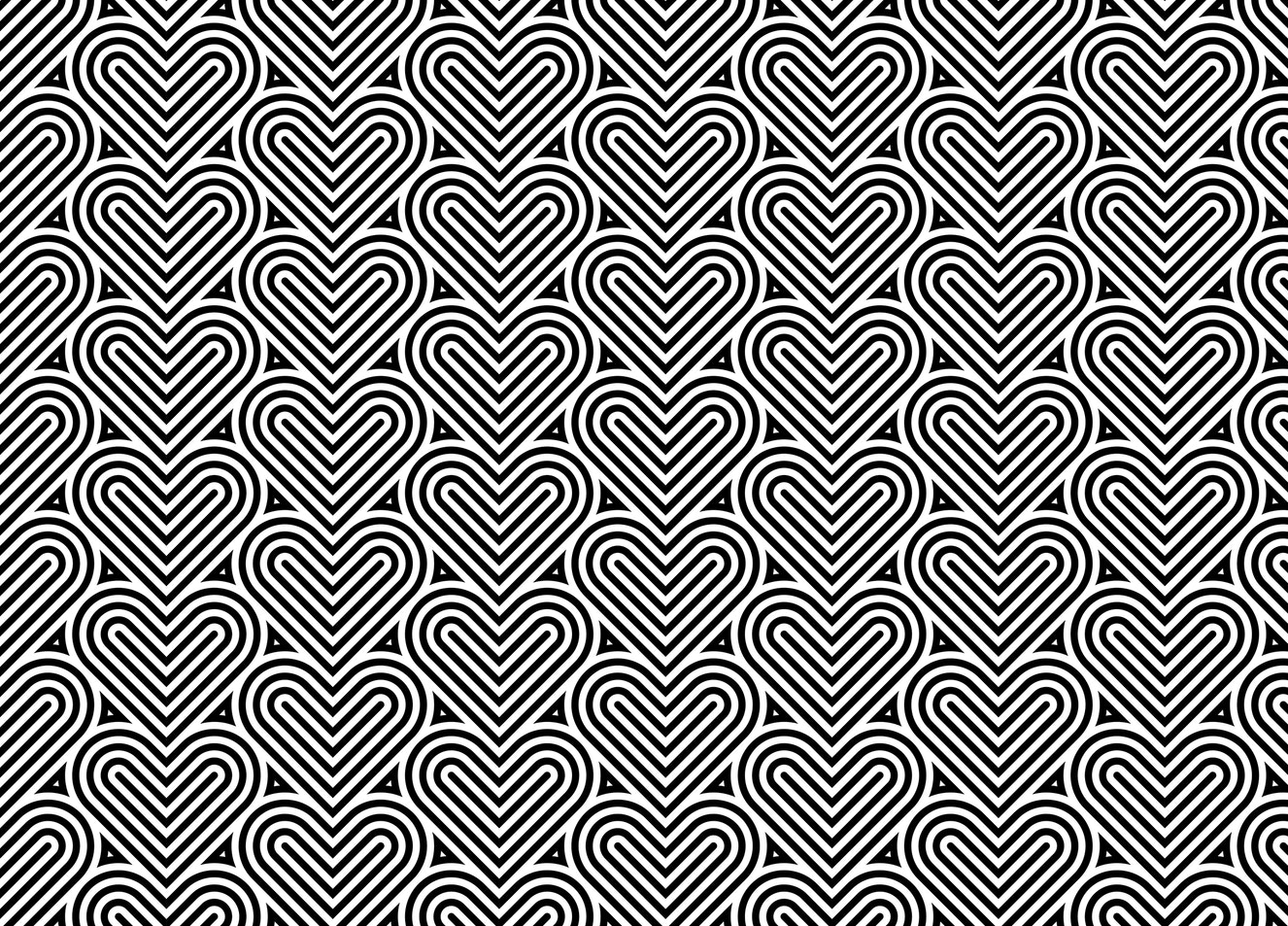 Black and White Geometric Pattern Linear Hearts