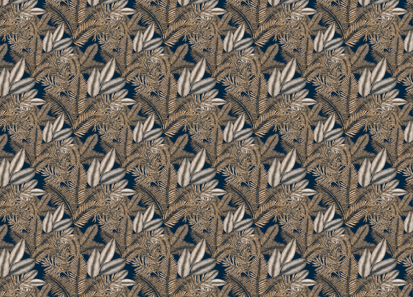 Floral Dark Blue Background Leaves Removable
