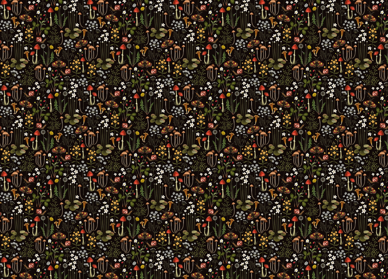 Fairy Forest Flower Mushrooms Black Background