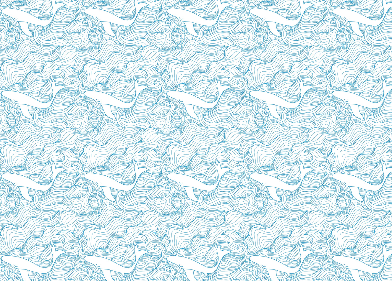 Light Blue Pattern Stormy Waves and Whales