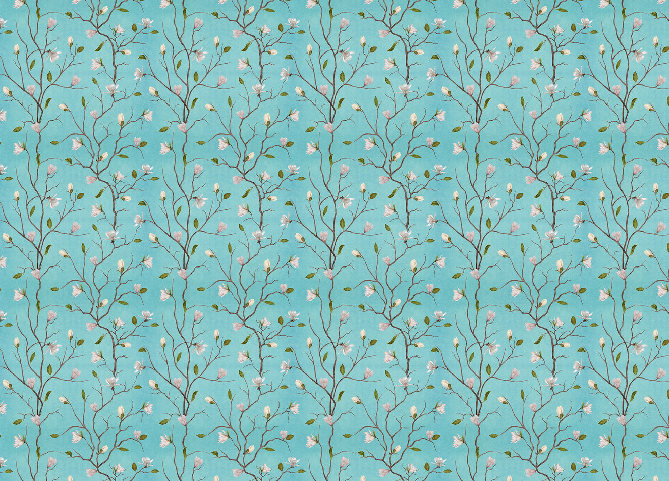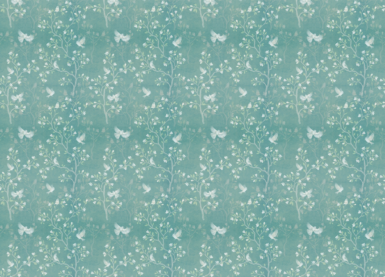 Turquoise Color Chinoiserie Magnolia Tree Birds