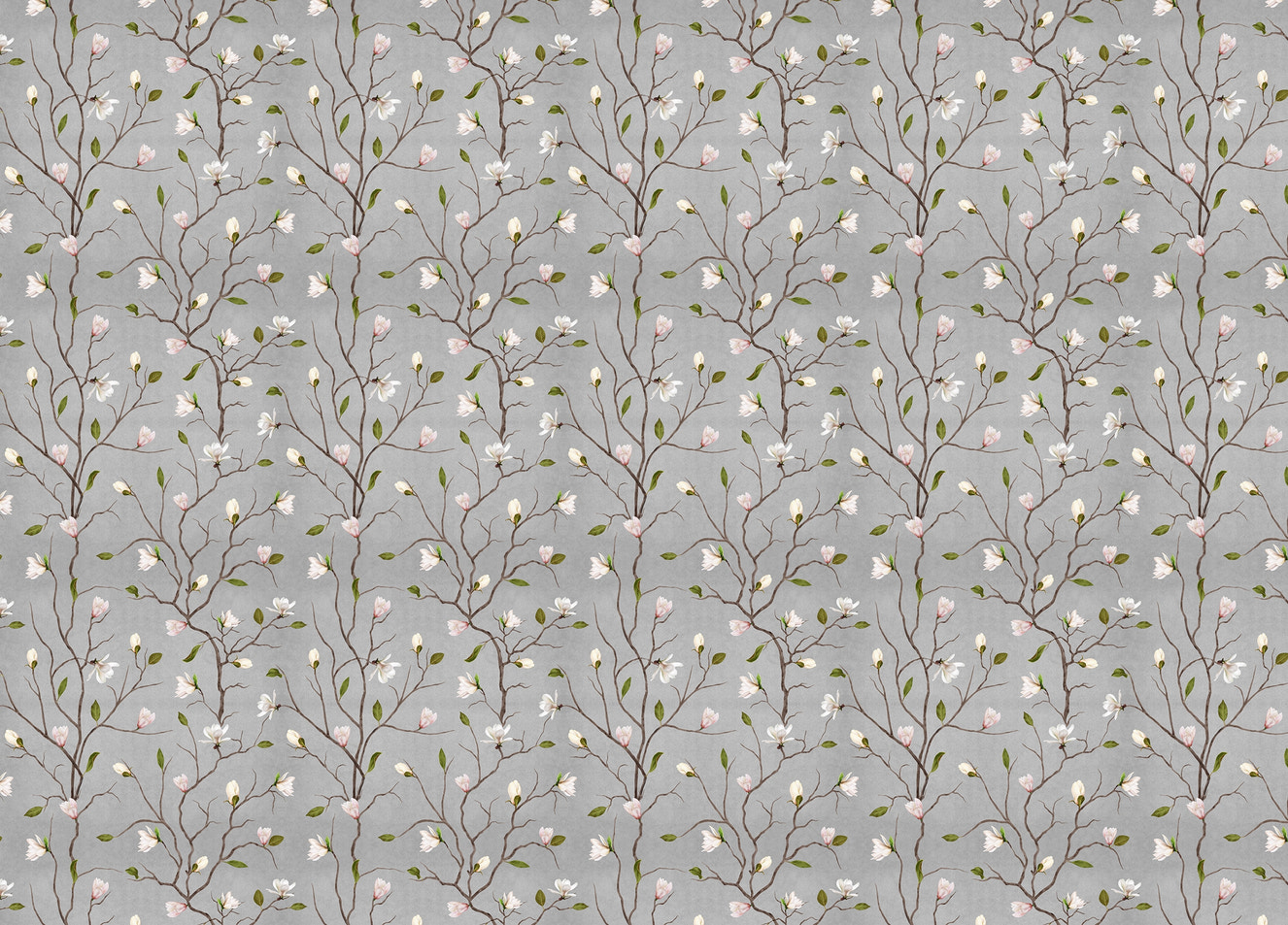 Grey Chinoiserie Pattern Magnolia Tree Flower