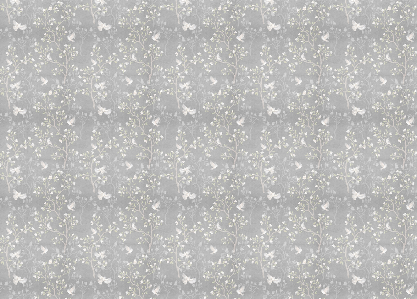 Grey Color Chinoiserie Design Magnolia Tree Birds