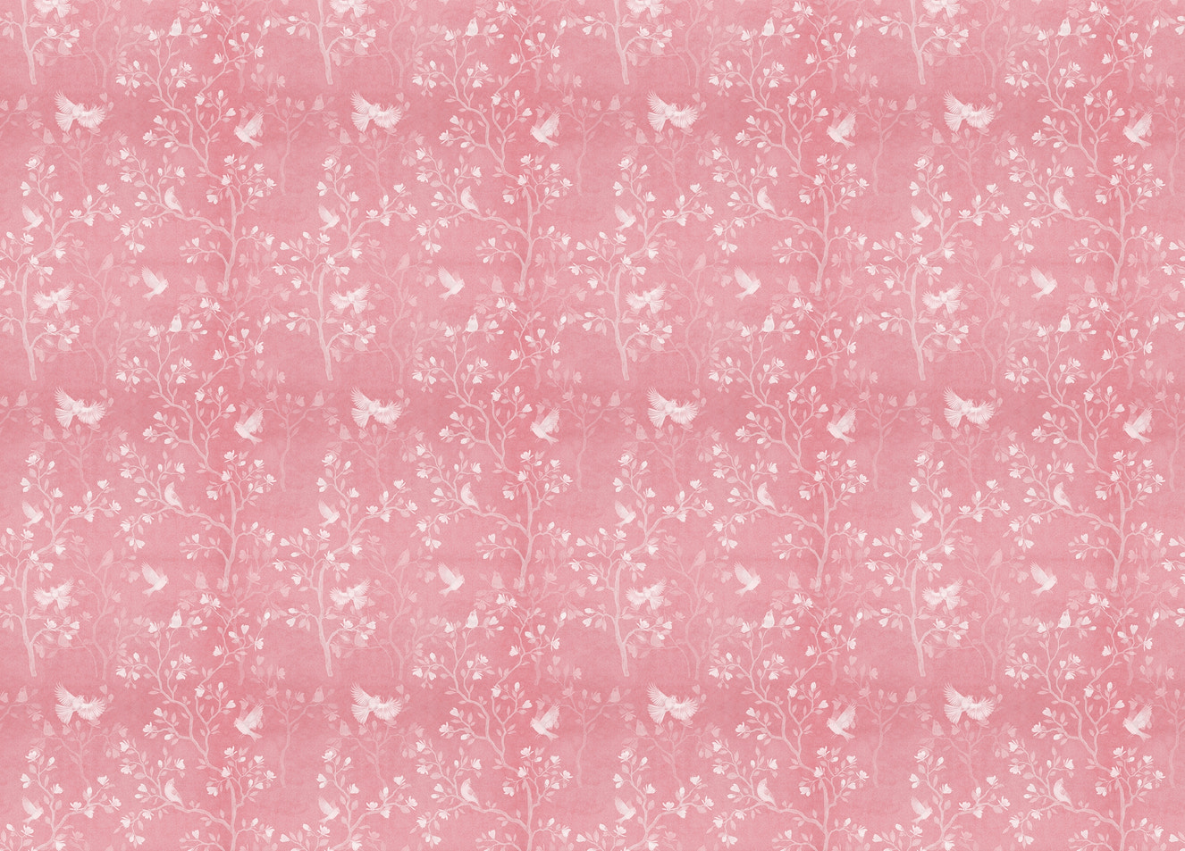 Pink Color Chinoiserie Pattern Magnolia Tree Birds