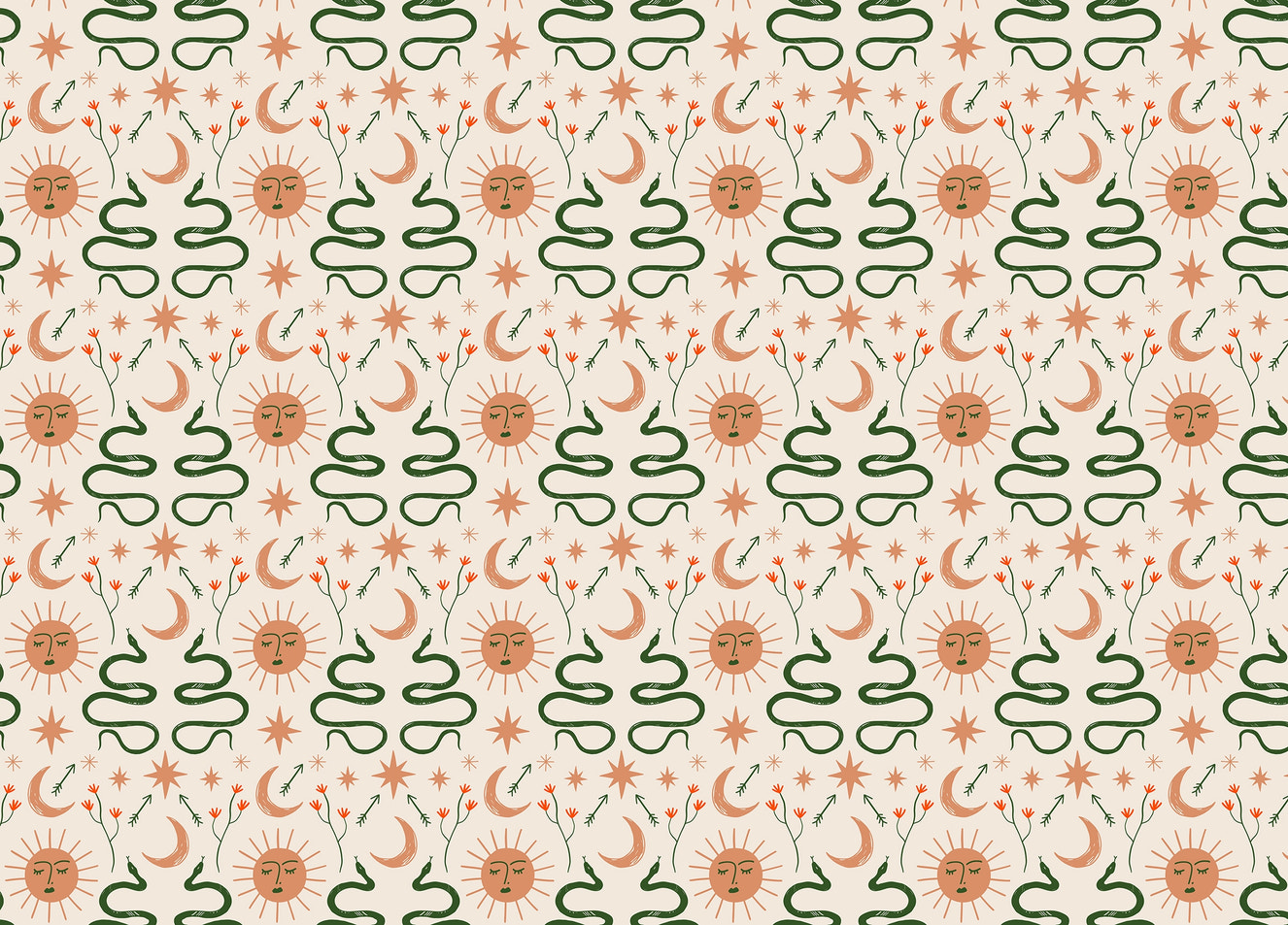 Earthy Tone Color Doodle Floral Repeat Pattern Boho