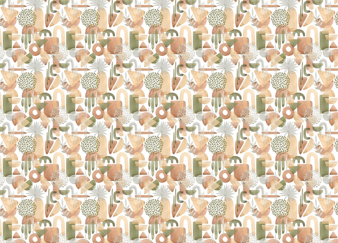 Watercolor Abstract Shapes Warm Pastel Colors Green