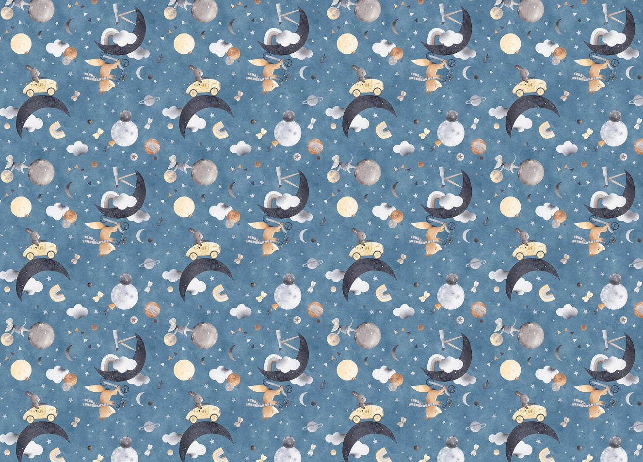 Fox Mouse Space Animals Play in Clouds Blue Color