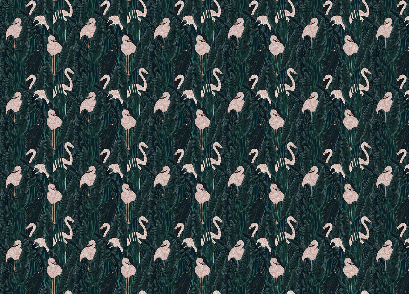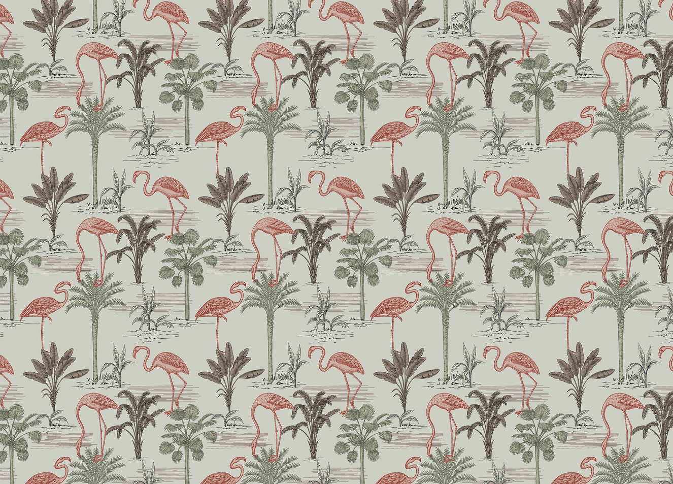 Graceful Delicate Pink Flamingos Rich Lush Exotic