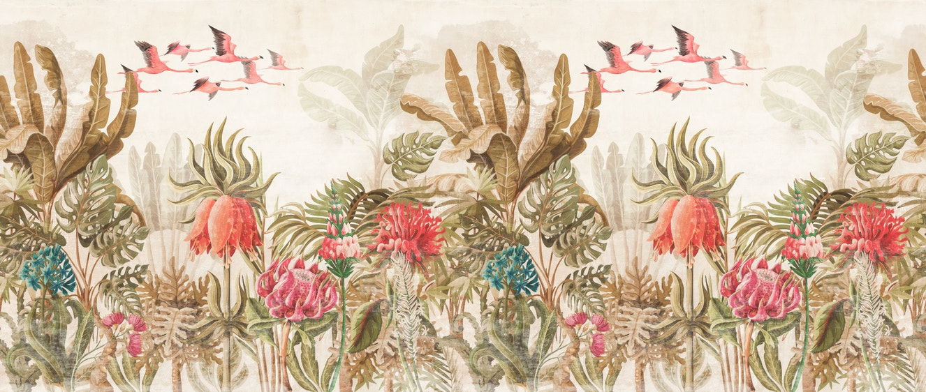 Tropical Themes: The tropical theme is the most popular in wallpaper decoration. From large banana leaf prints to playful animals and exotic forest scenes, bring a whimsical vibe to the walls. Mostly known for the living room walls and hallway area, which captivate with striking visual and natural elements.