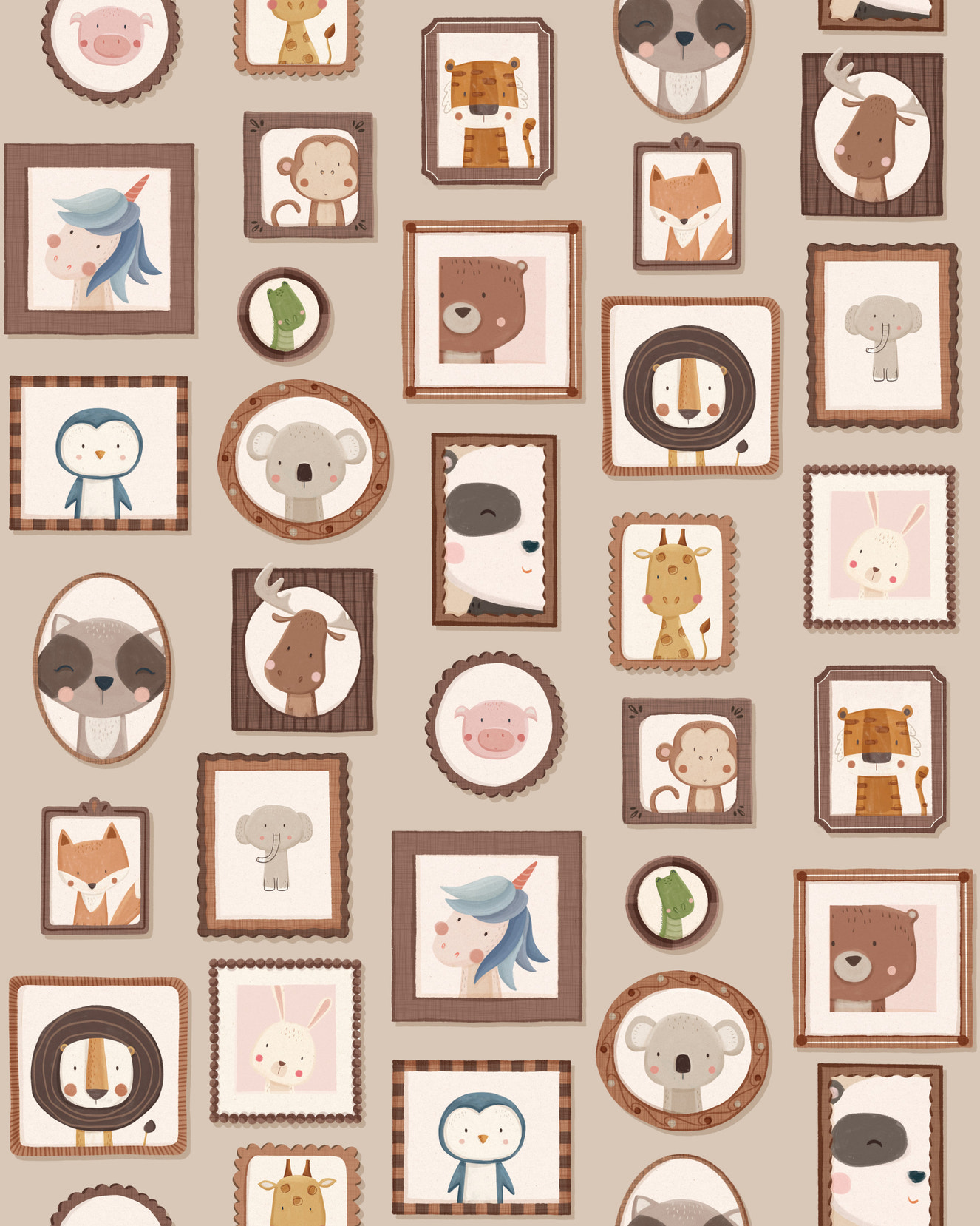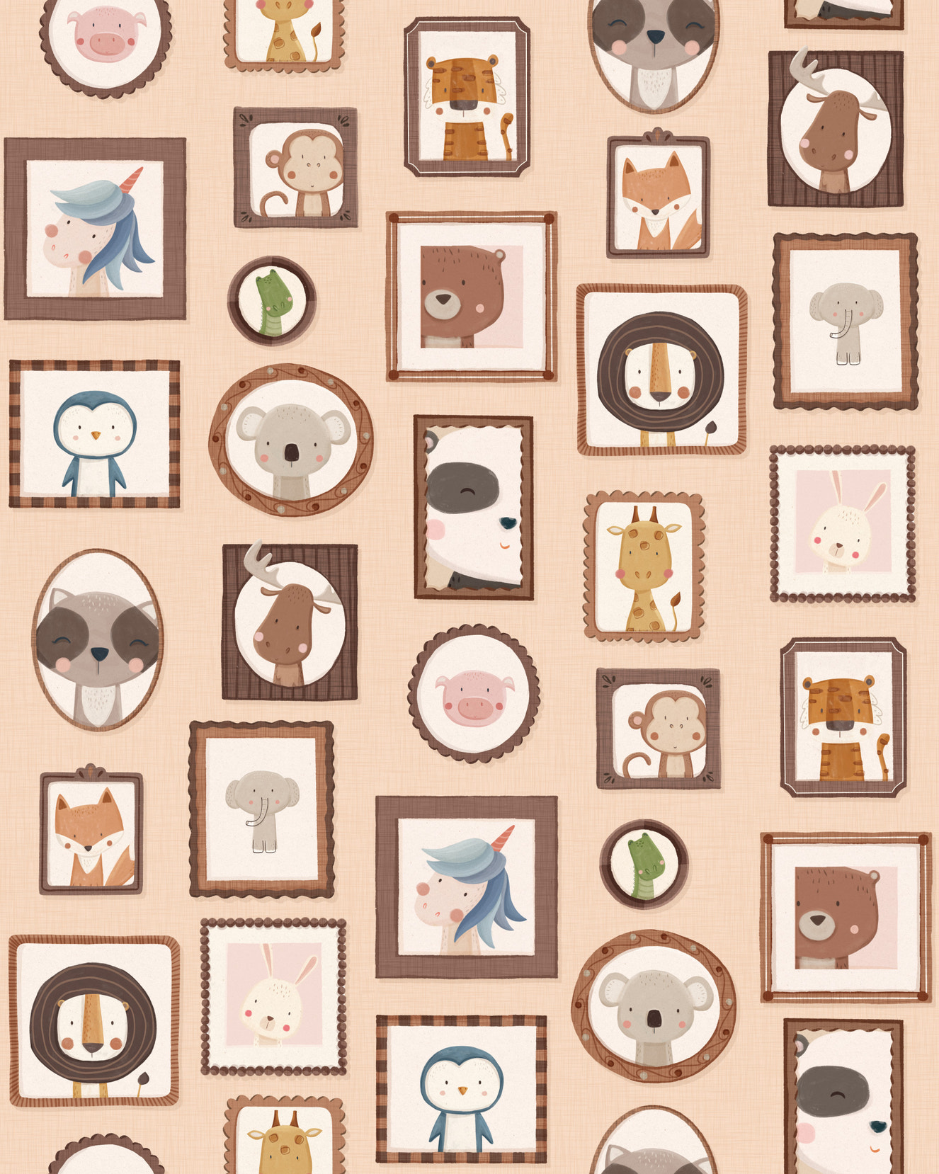 From roaring tigers to gentle deer, wallpaper of animals styled with whimsical patterns adds both boldness and charm.