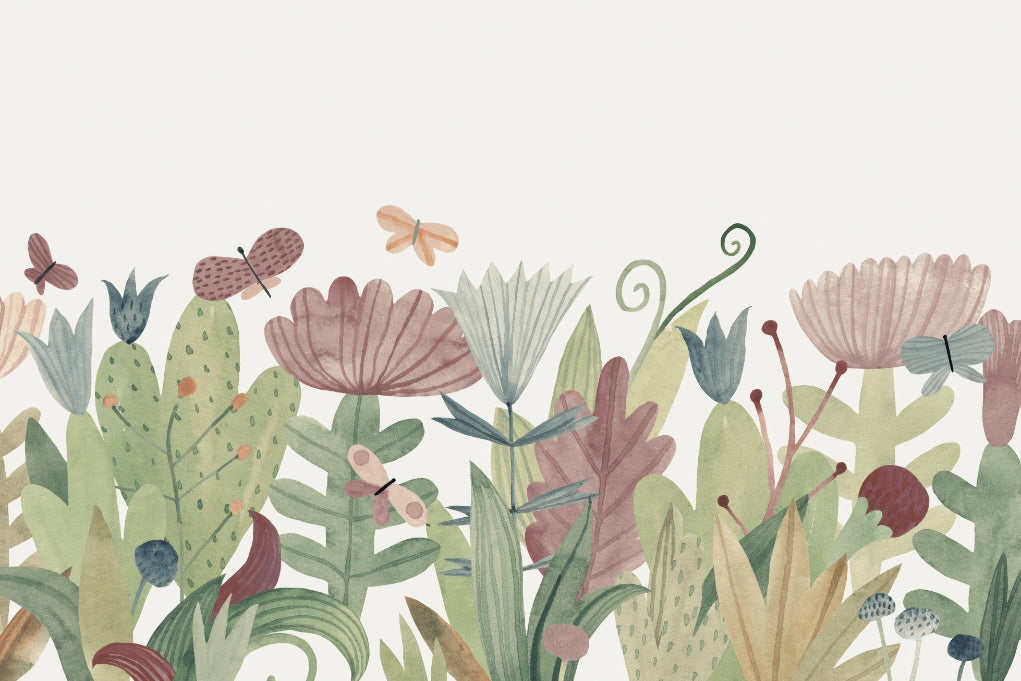 Our purple mural wallpaper butterfly is a fabulous addition to your space. Characters such as oversized butterflies, spring flowers, and breezy tones create a whimsy across each nook. Perfect for kids and adults alike, the wallpaper is a visual treat for everyone in search of elegance.