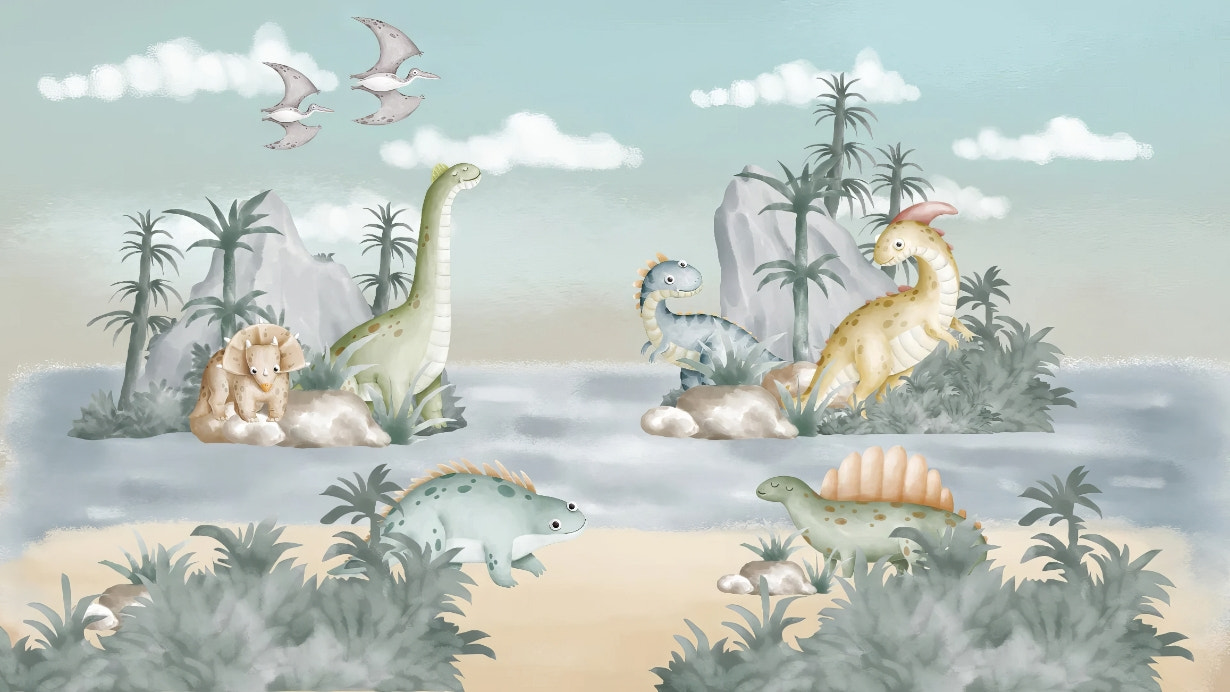 Babies and their love of animals is always a fun story. The little ones always establish a special bond with the animals. Now, bring their favorites into their own space with the animal wallpaper for kids room. With joyful creatures like cavorting monkeys and roaring tigers to cool leopards and chubby bears, make your babies' space more adventurous and engaging. Dinosaur wall decor creates a different craze among the childrens.
