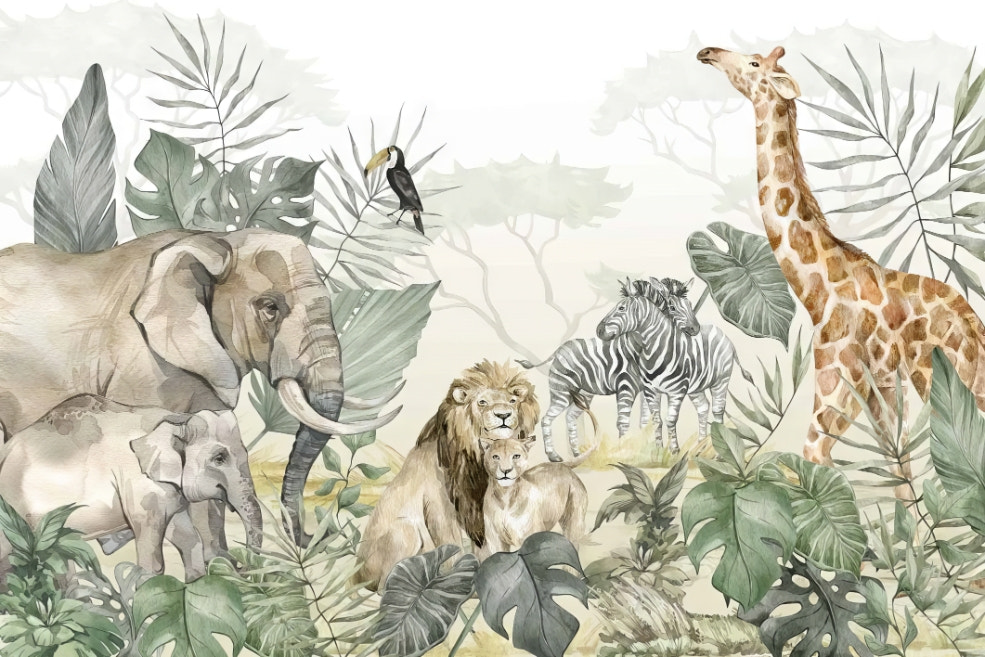 Make your little one's bath time into a fun activity with our waterproof boys bathroom wallpapers. These murals are waterproof and durable. The design features underwater creatures, mermaids, or jungle animals.