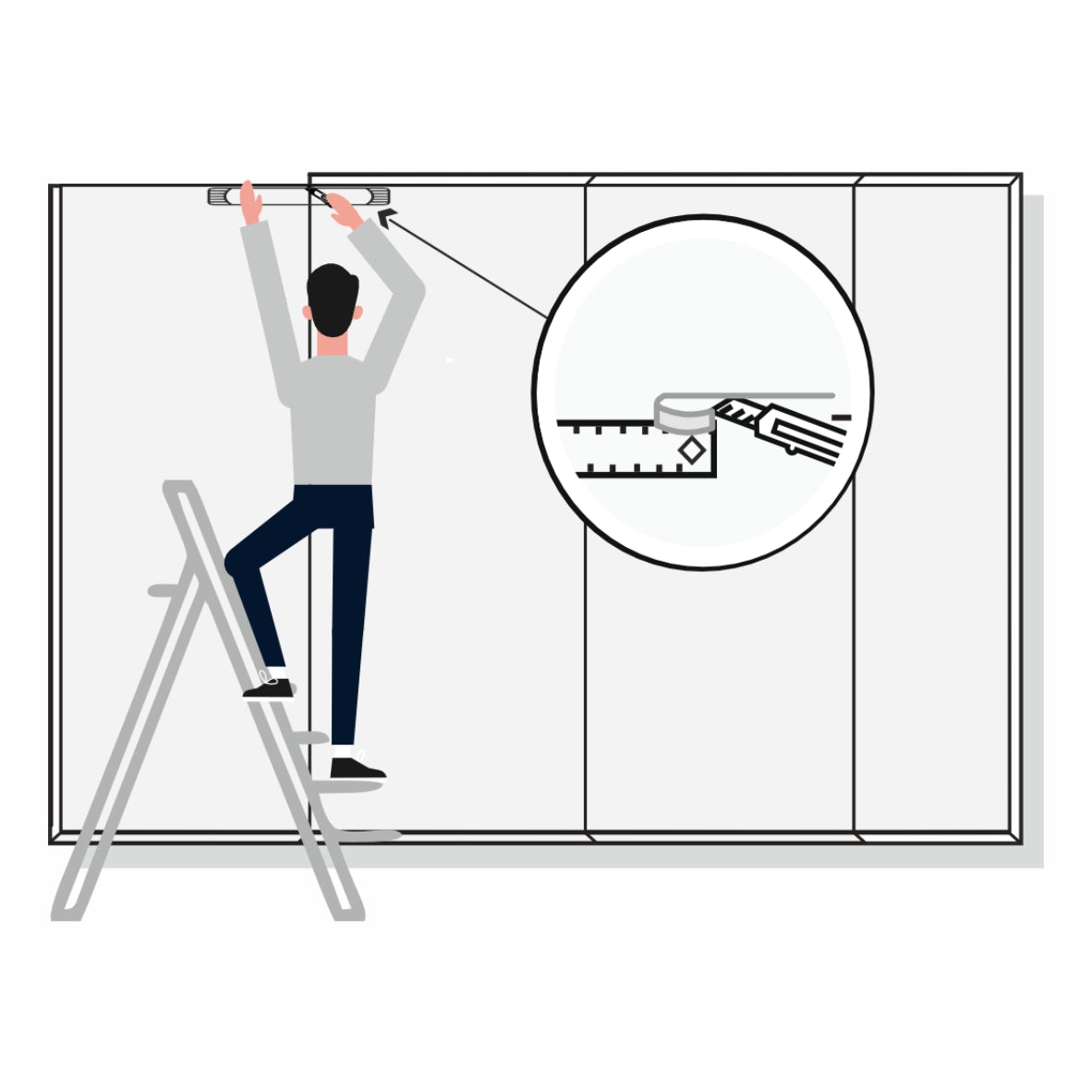 - Position it on the wall till end of the ceiling top line and overlap on it at least 1 inch which you may trimmed it after all panel install