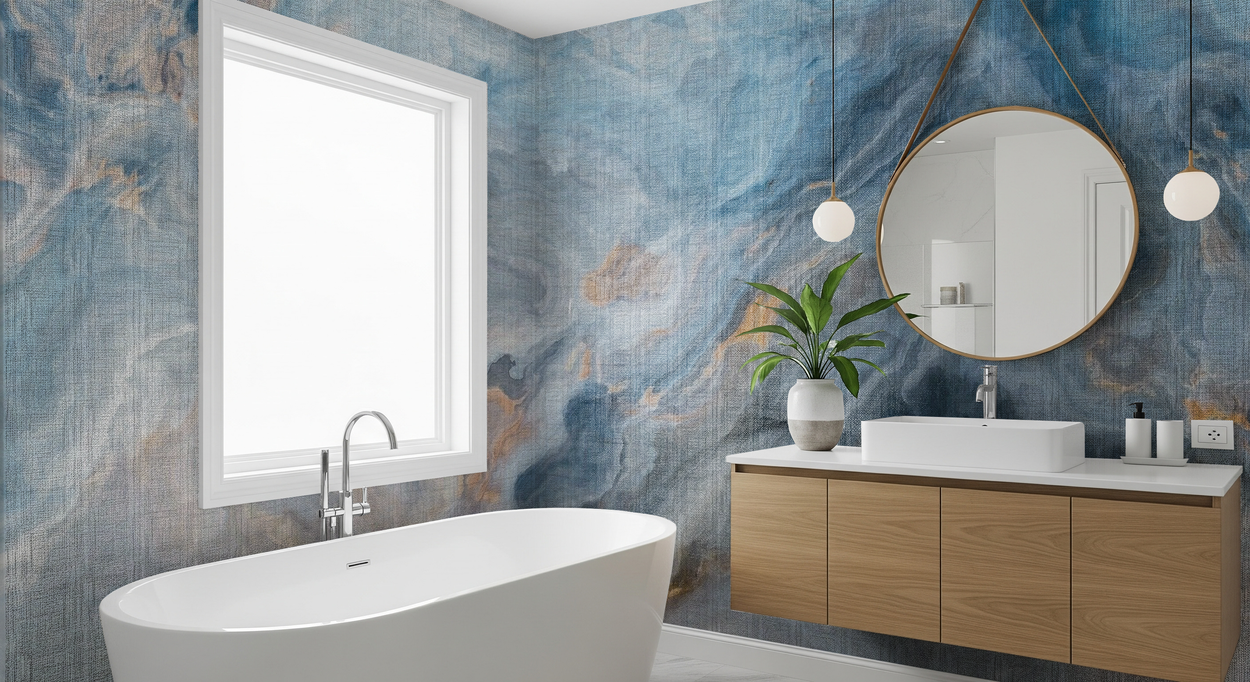 Unexpected spaces like the bathroom and the washroom accommodate wallpaper effortlessly. All thanks to its waterproof, removable, and durable quality.