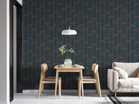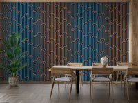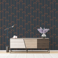 Step into the golden era of design with our abstract art deco arches orange color wallpaper. This art deco wallpaper draws inspiration from the Roaring Twenties, encapsulating the period's fascination with geometric forms and bold structures. The warm orange hues are offset by deep, sophisticated tones, creating an inviting atmosphere that harks back to a time of opulence and style. Perfect for those who appreciate the glamour of yesteryears with a modern twist, this wallpaper is a statement of timeless elegance. Let your walls make a bold declaration of luxury with a design that's as classic as it is contemporary.