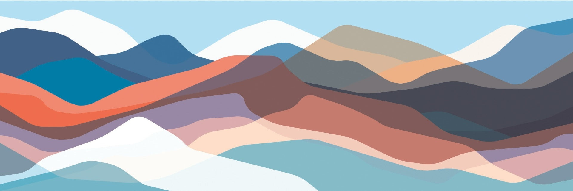 Minimalist multicolored mountain mural with transparent overlapping shapes
