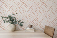 Refresh your living room with our abstract patterns pastel color brush dots wallpaper. This living room wallpaper design combines playful brush dots in soothing pastel colors, creating a vibrant yet cozy backdrop for any living area. It's perfect for those seeking to add a touch of creativity and color to their living room walls. The unique abstract patterns offer a fresh, modern aesthetic that complements various decor styles. Make your living room a standout space with this distinctive wallpaper choice, effortlessly blending art and style for a visually appealing environment.