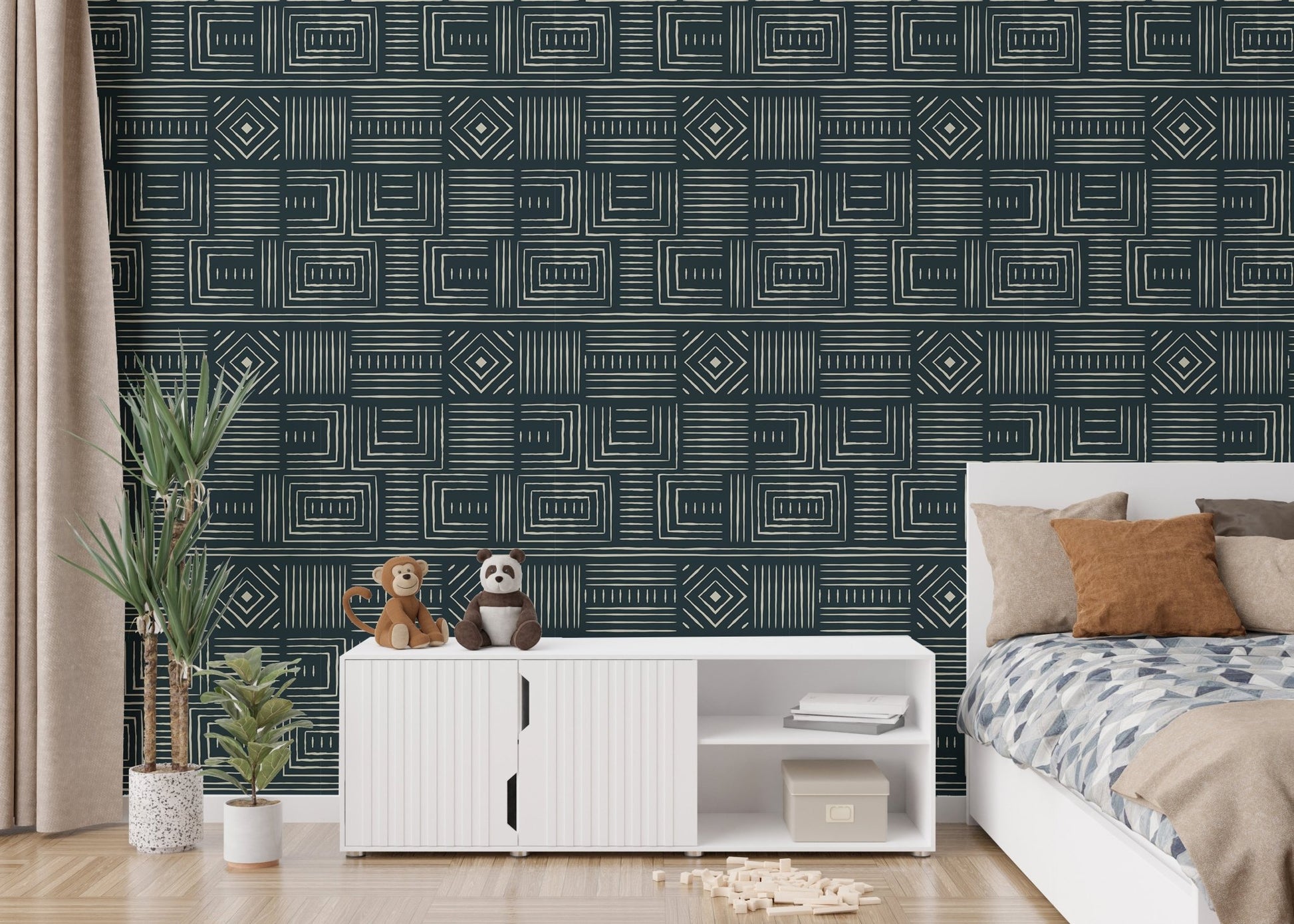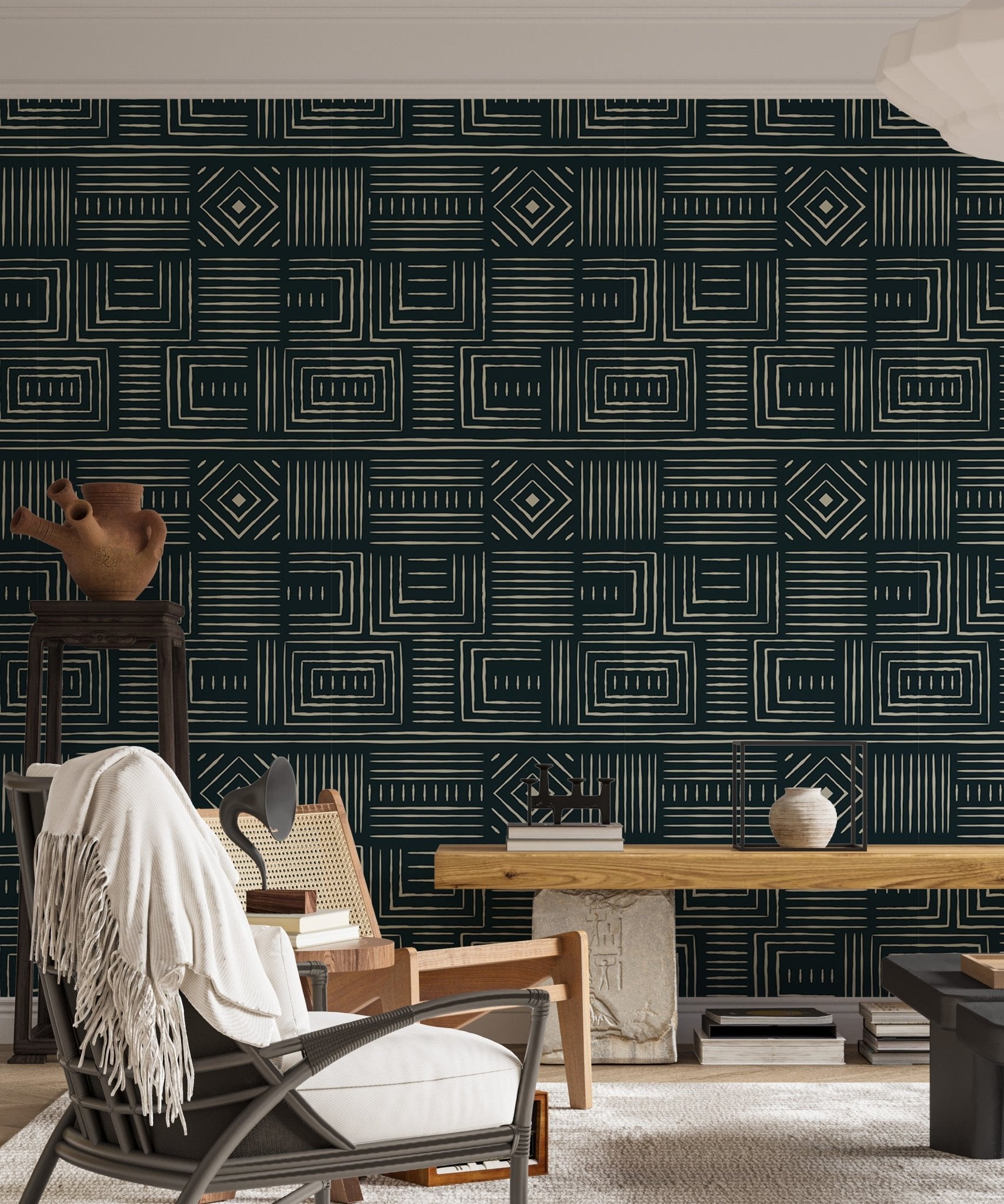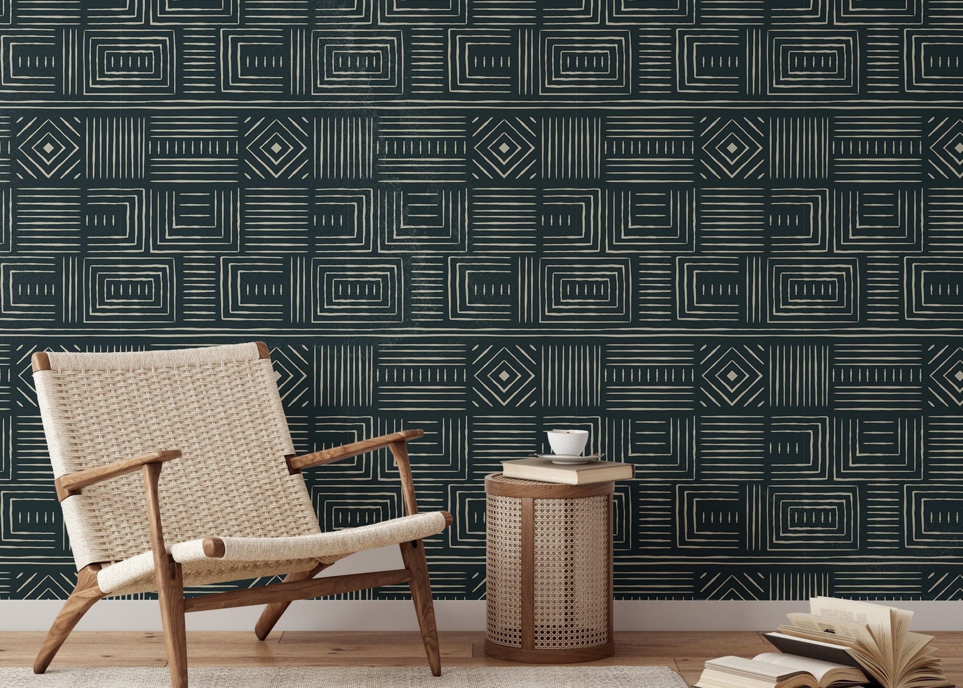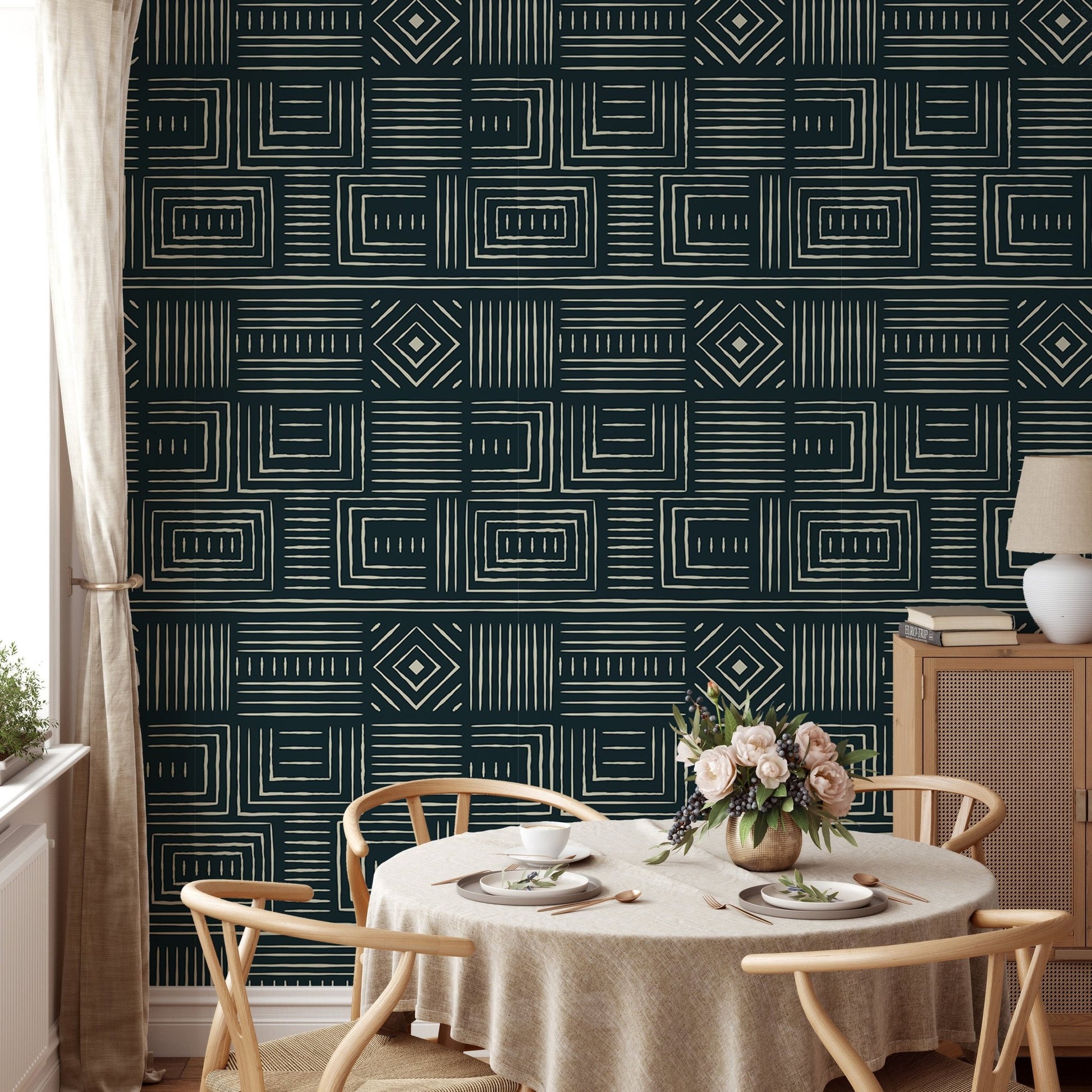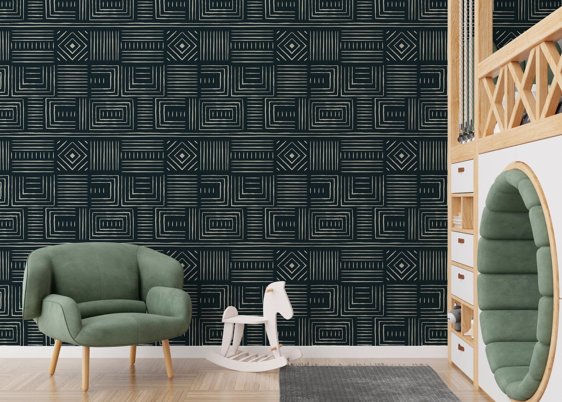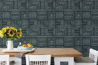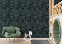 Africa Tribal Art Ethnic Green Geometric Wallpaper
