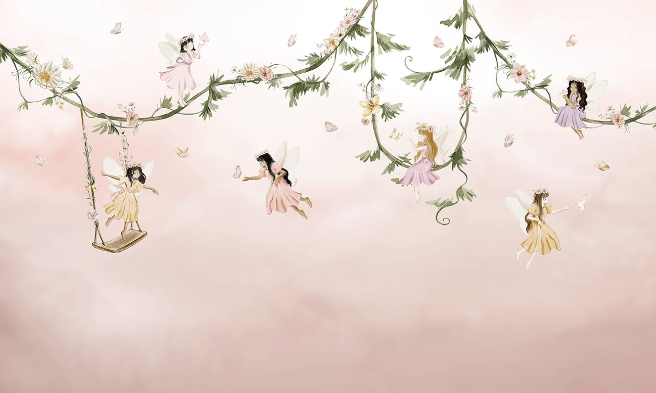 Soft pastel aquatic wall mural featuring mermaid and ocean animals.
