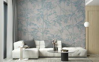 Bring a touch of the outdoors into your home with this refined bamboo silhouette wallpaper for walls. The calming azure and pale green create an airy, sophisticated ambiance. Imagine this in a study, dining room, or even a modern entryway. This design provides a subtle statement. Its understated elegance blends seamlessly with various design styles, making it a simple solution for adding subtle texture to your space. Enjoy this delicate botanical design.