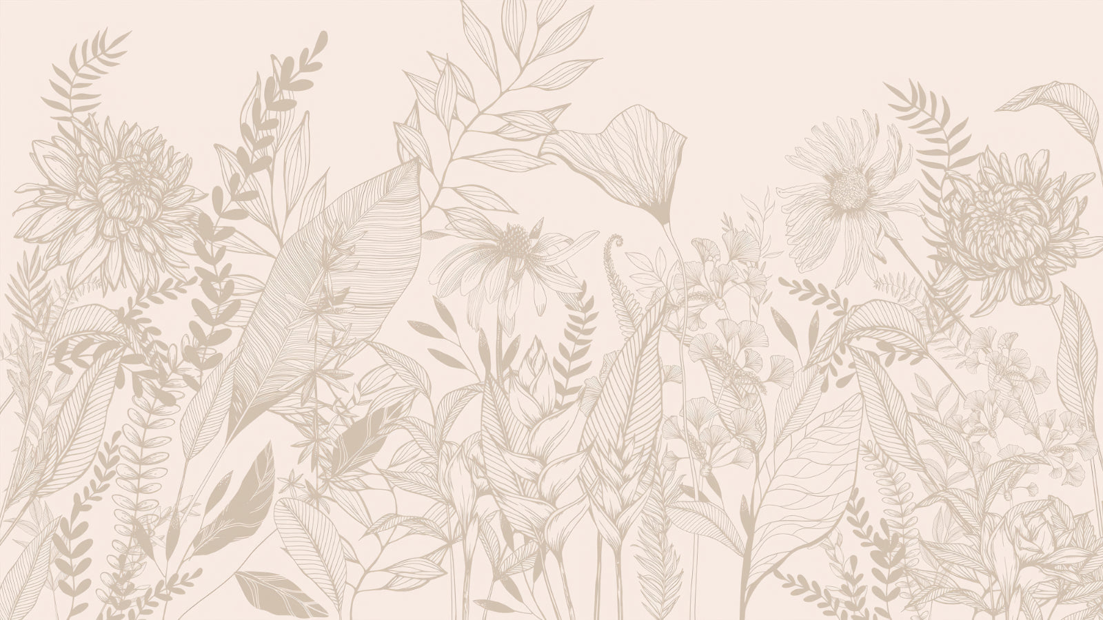 Minimalist botanical wallpaper featuring beige floral and plant illustrations.