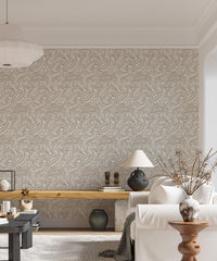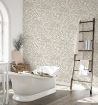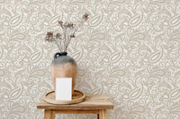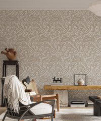 Beige Color Middle Eastern Paisleys Swirled Leaves Wallpaper