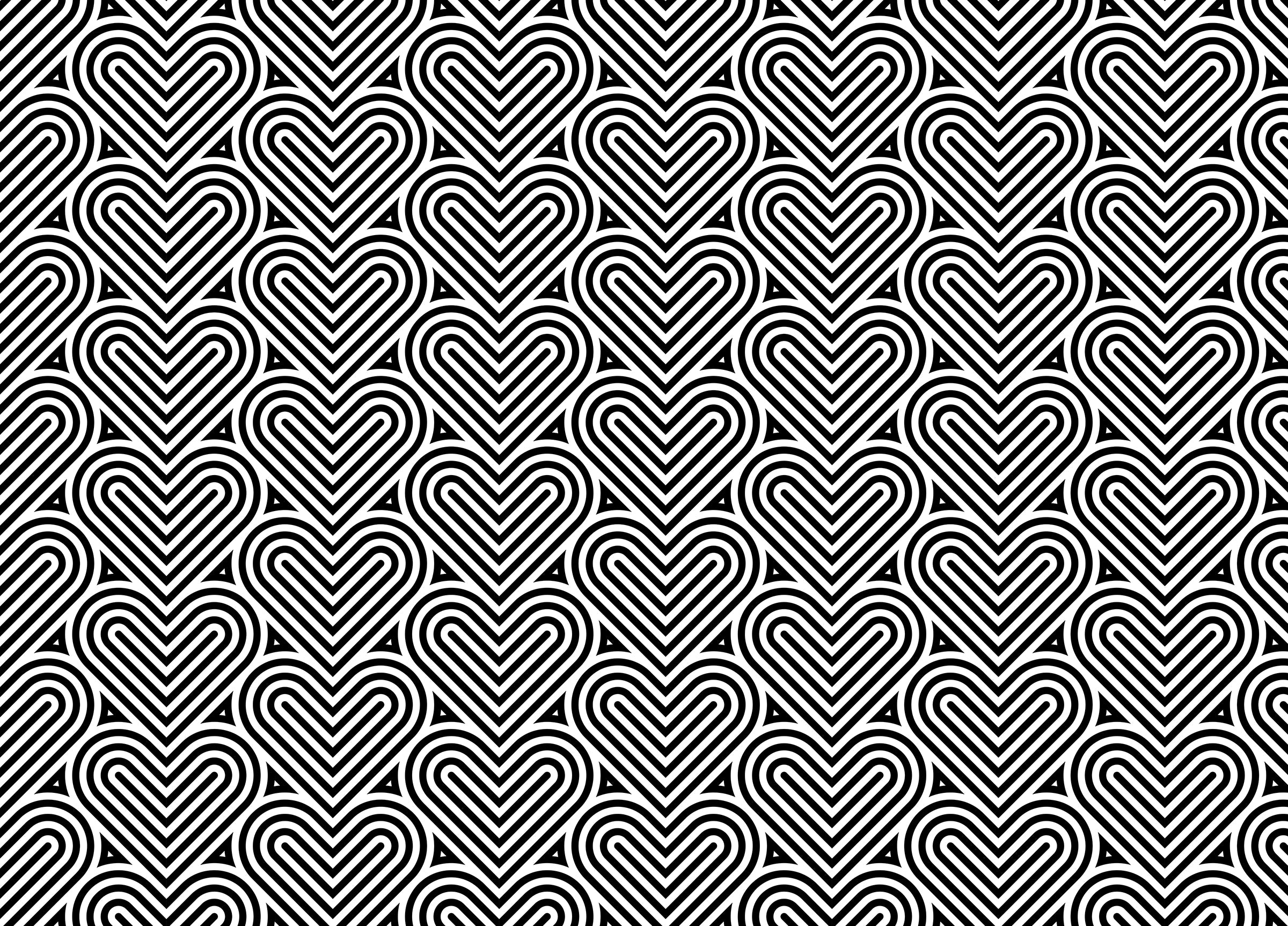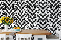 Black and White Geometric Pattern Linear Hearts Wallpaper