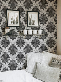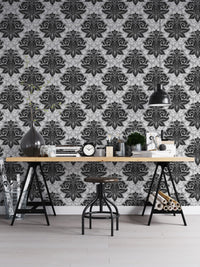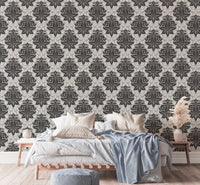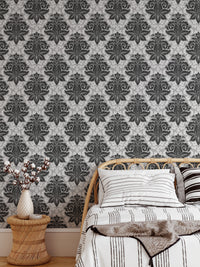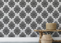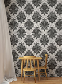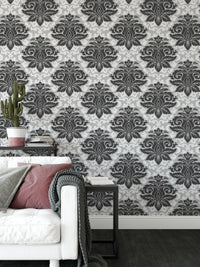 Black and White Greyish Damask Self Adhesive Wallpaper