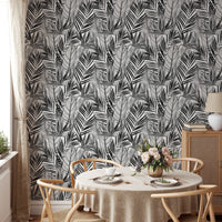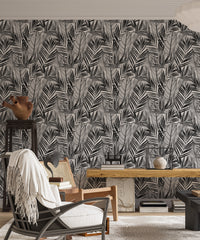 Bring the essence of the tropics to your bedroom with our black and white watercolor tropical palm leaves wallpaper. This design combines the timeless elegance of monochrome with the lush patterns of nature. Ideal for creating a statement wall or a complete room makeover, this bedroom wallpaper captures the serene beauty of palm leaves with a watercolor effect, providing a stylish contrast that complements any decor. Whether you're going for a modern, minimal look or a more classic style, this wallpaper is a chic and effortless way to refresh your bedroom's look.