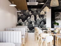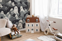 Get into the spooky spirit of Halloween with our black and white ghosts halloween wallpaper. This light-hearted design has a floating pattern of friendly ghosts across a dark, shadowy backdrop. This wallpaper will give your walls that eerie fun, perfect for themed parties, haunted house decorations, or just brightening up your walls for Halloween. It comes in a monochromatic color scheme to agree with any style of the rooms, thus being universal for any interior. Being made from top-quality materials makes it easy to apply and remove with no hassle. Make your home haunted with this delightful ghostly wallpaper!