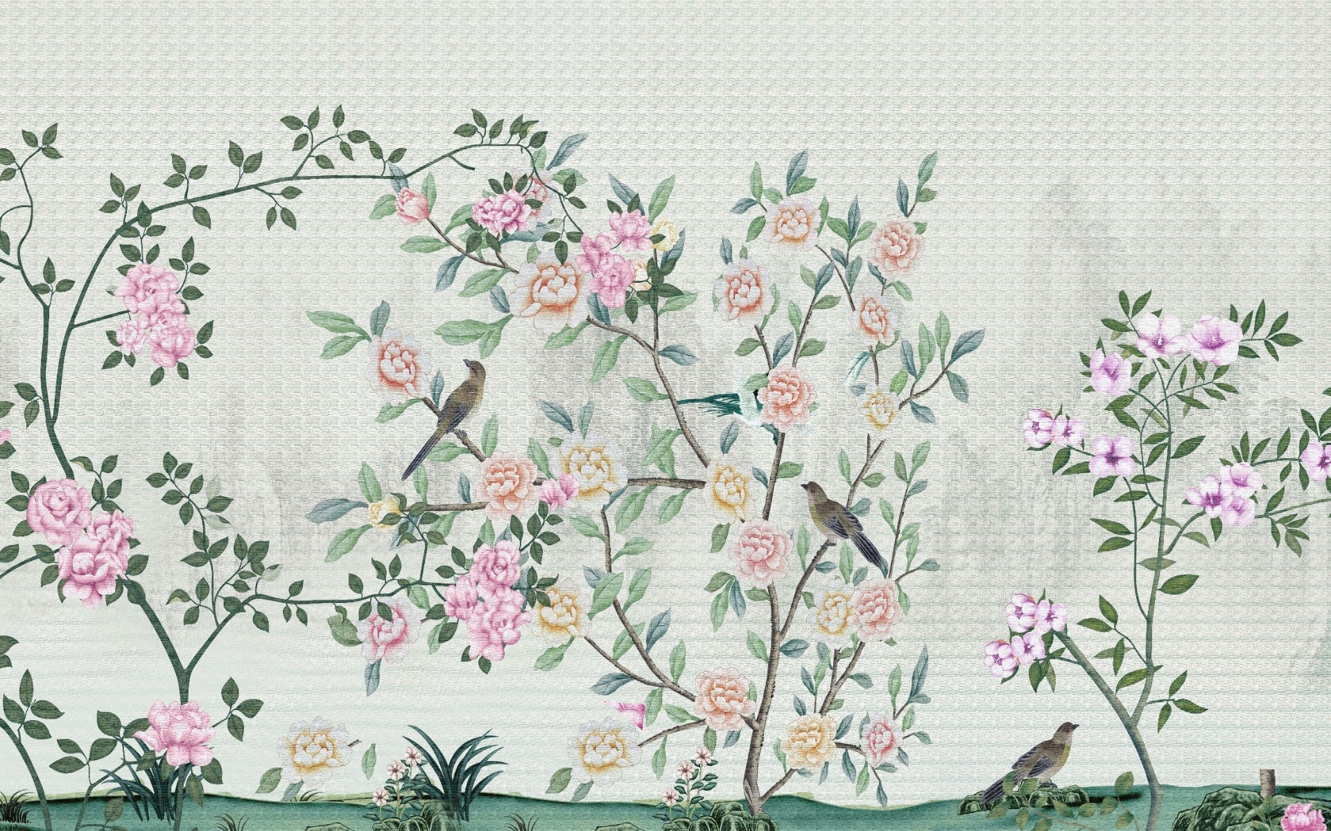 Garden trails wallpaper with floral details.