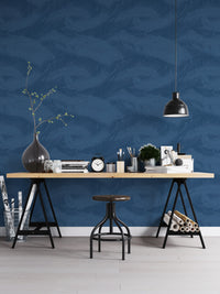 Blue Color Palm Leaves Silhouette Removable Wallpaper