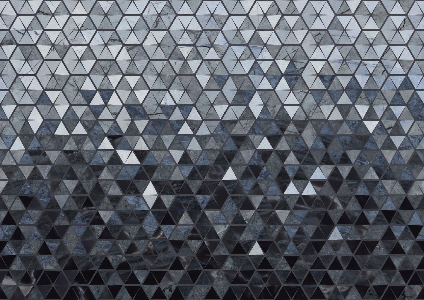 Add a modern and striking touch to your interiors with the Blue Geometrical Triangle Wallpaper. It's a design that holds an intricate pattern of interlocking triangles in different shades of blue and gray that can give a sophisticated yet dynamic visual effect. A gradient-like arrangement adds depth and dimension, making it perfect for accent walls in the living room, bedroom, or office. This contemporary geometric pattern is ideal with minimalist or industrial-style decor. High-quality materials ensure easy installation, durability, and flawless finish. It transforms any space into a stylish and Terrazzo Surface