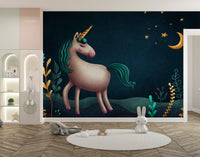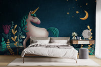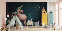 Blue & Green Night Unicorn Kids Nursery Wallpaper Mural
