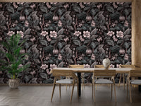 Enhance your space with the botanical pink blossom wall mural, a captivating blend of nature’s elegance and timeless charm. This botanical wallpaper features intricate details of soft pink blossoms and lush green leaves set against a dark background, creating a bold yet sophisticated ambiance. Perfect for living rooms, bedrooms, or even creative spaces, this mural brings a touch of the outdoors inside, infusing your decor with a calming, organic vibe. Ideal for those seeking a statement piece, the mural elevates interiors with a luxurious and modern botanical design, effortlessly transforming any room into a serene escape.