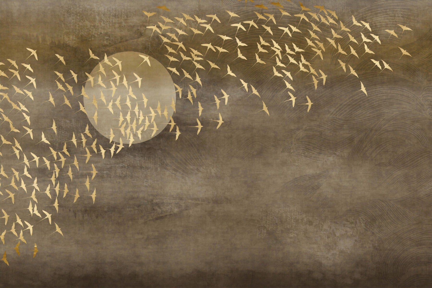 Let brown, golden flying birds wallpaper murals give your inner space an impeccable look! We offer you a whole array of stylish and original designs from which to choose and will make any room bright and fresh. Our brown, golden wallpaper guarantees the beauty of your surroundings and gives you peace of mind while being confident that you are only using quality material. This one can be used in accentuating an area or for a complete renovation project; our wallpaper murals will surely bring your rooms to life. Check them out today and find yours!