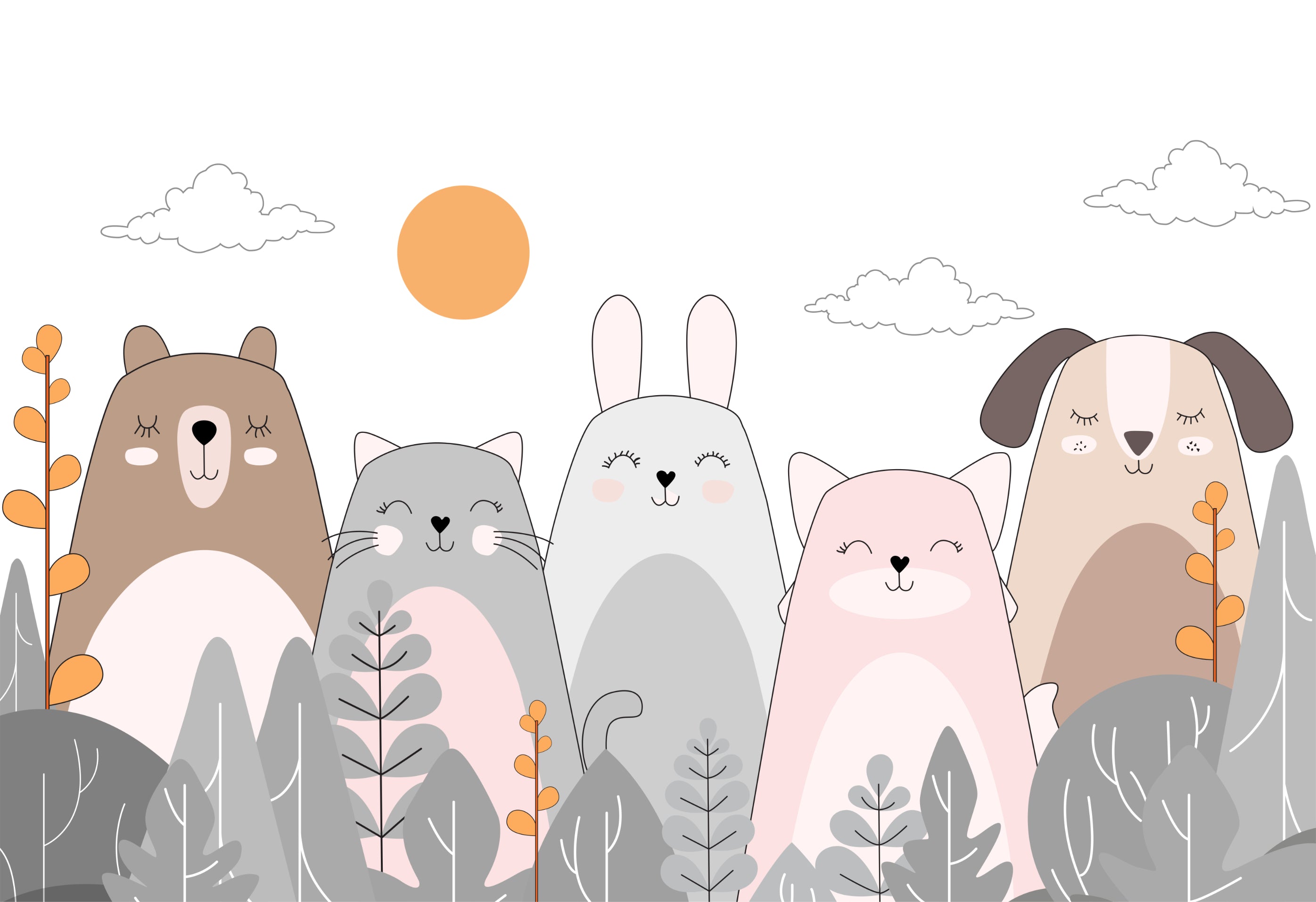 Charming wall mural featuring cute animal characters