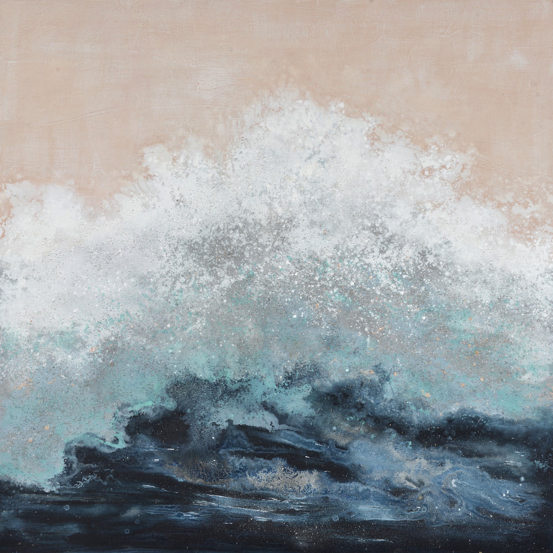 Bring a touch of abstract artistry to your home with this captivating coastal scene. The design features an interesting blend of beige, white, teal, and dark blue hues. Brushstrokes create the illusion of crashing waves meeting a sandy shore. The blend of colors adds depth and movement. Use this wallpaper for walls to elevate the style of a living room, bedroom, or bathroom. It works well with minimalist decor, adding subtle texture and a focal point.