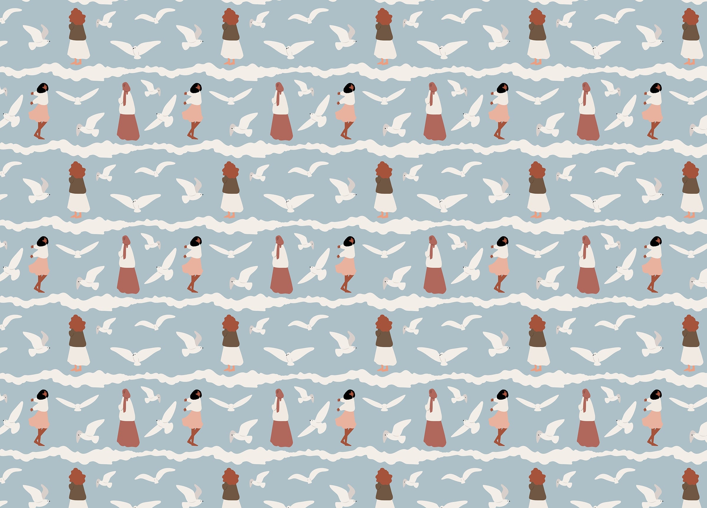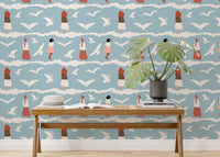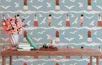 Coastal Repeat Pattern Flying Seagull Birds Kids Wallpaper