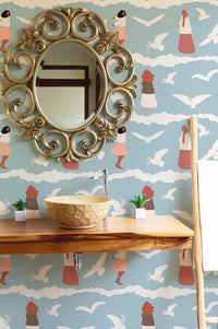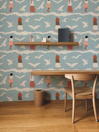 Dive into the playful charm of our coastal repeat pattern flying seagull birds kids wallpaper. This wallpaper style brings a lively seascape into your child's bedroom or play area. Featuring whimsical seagulls in flight, set against a serene coastal backdrop, it's perfect for sparking imaginations and creating a fun, engaging environment. Whether for a themed room or a unique touch, this wallpaper adds a splash of joy and creativity, making it a delightful choice for little explorers who dream of seaside adventures and the open sky.