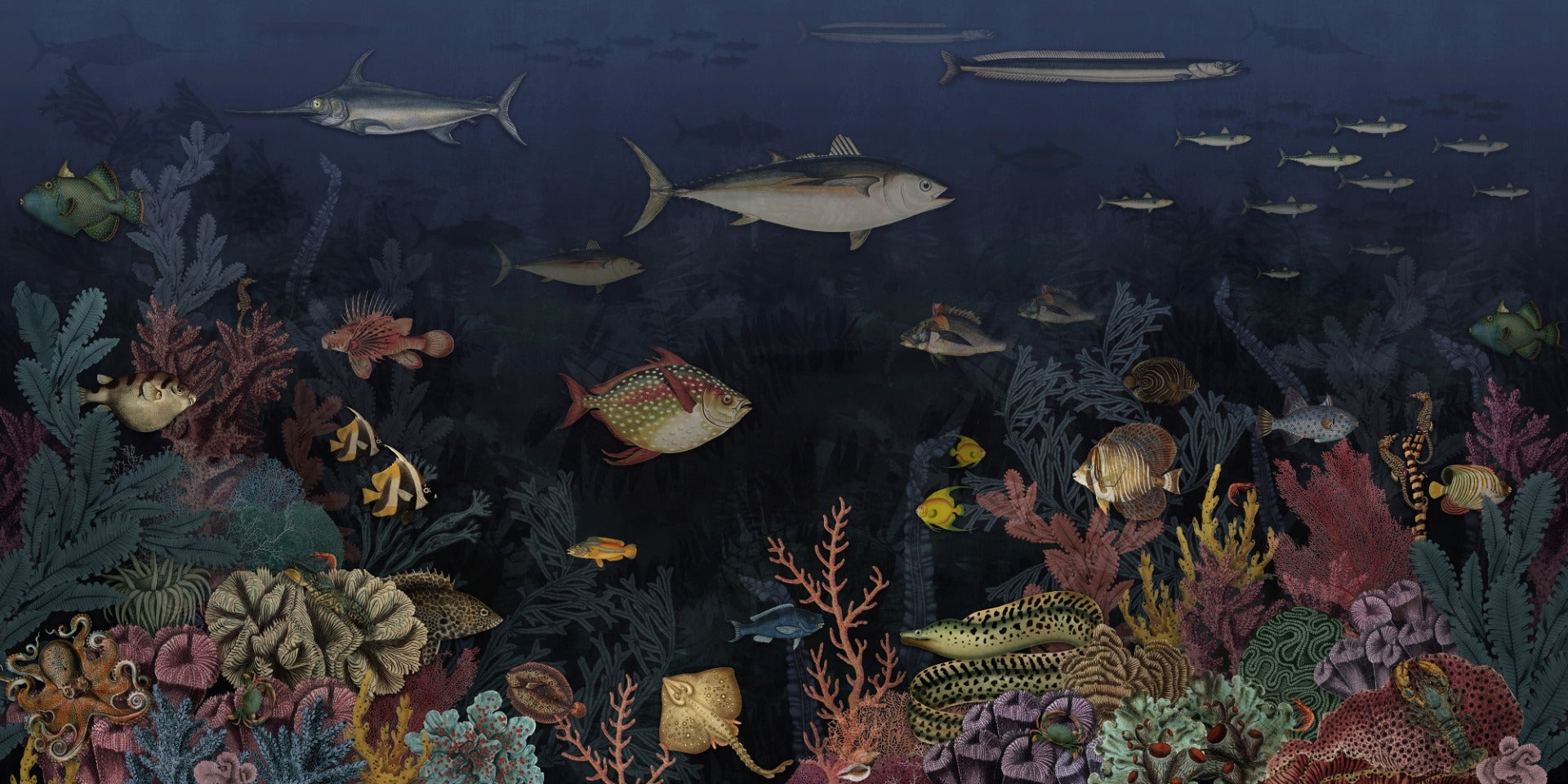 Colorful Aquatic Plants Fish Corals Ocean Pattern Wallpaper